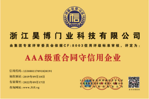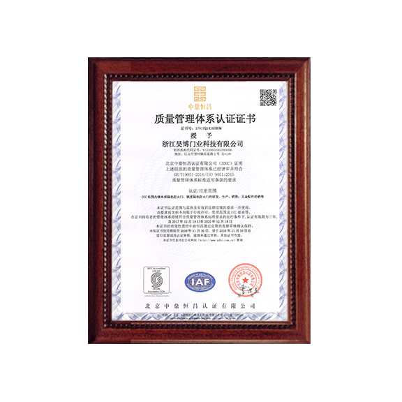 公司一直以來嚴格執(zhí)行ISO9001質(zhì)量體系和ISO14001環(huán)境管理體系標(biāo)準(zhǔn),建立了完備的科研、開發(fā)、生產(chǎn)、銷售服務(wù)體系。公司是浙江省門業(yè)協(xié)會會員單位,江山門業(yè)協(xié)會理事單位,中國木材與木制品流通協(xié)會會員單位,江山市消防協(xié)會副會長單位。